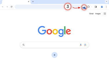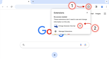 Click the puzzle piece (1) in the top right of your browser. Then, click the little pin (2) next to the extension: