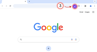 Click the puzzle piece (1) in the top right of your browser. Then, click the little pin (2) next to the extension: