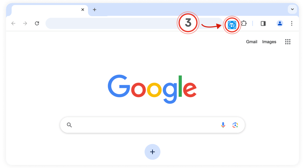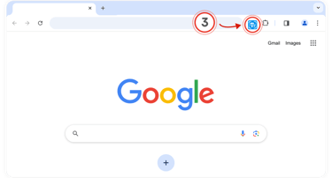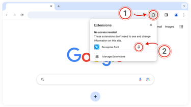 Click the puzzle piece (1) in the top right of your browser. Then, click the little pin (2) next to the extension: